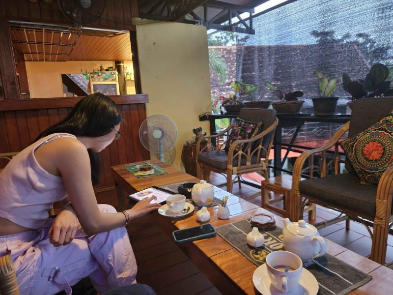 We got greeted by the hosts Peter and Lek, an Australian-Thai couple. We had to wait in the lobby for the rain to come down so we could bring our luggage upstairs