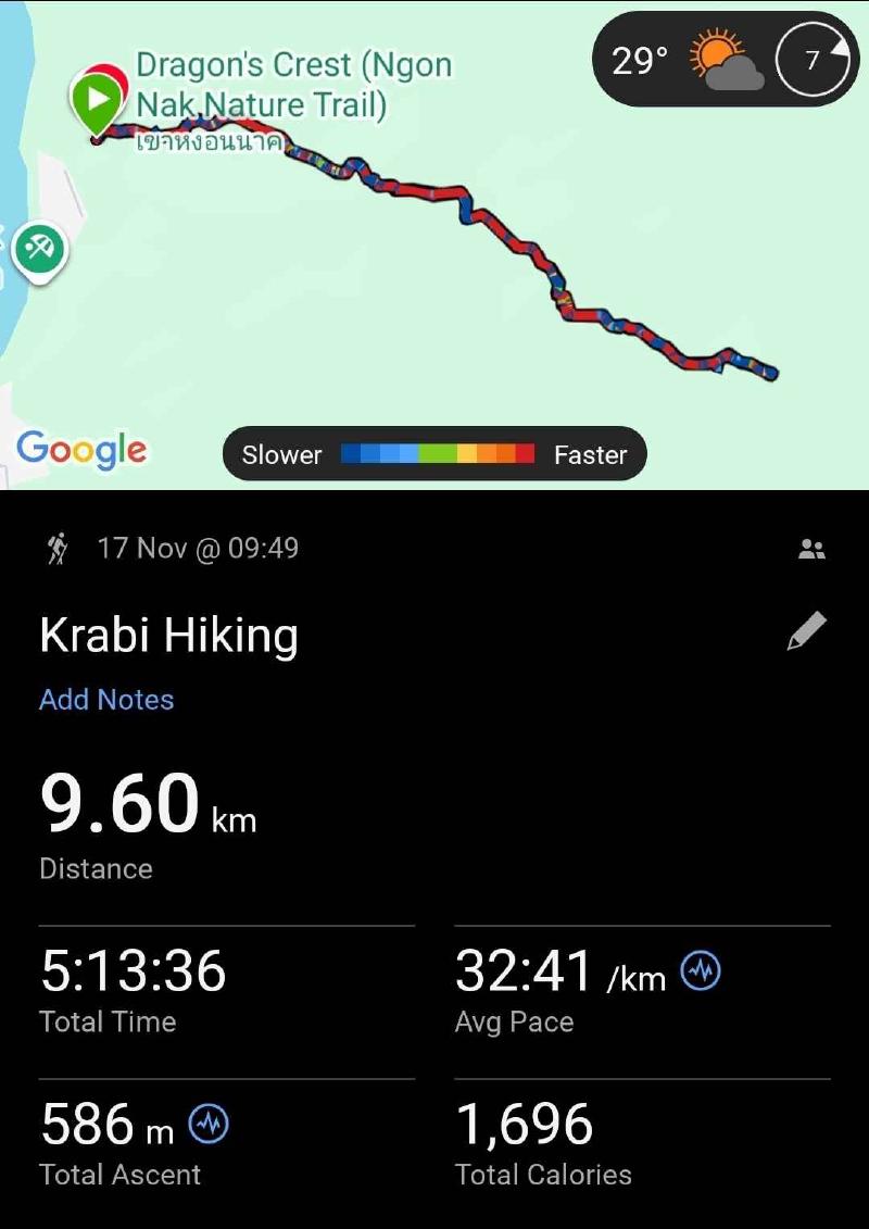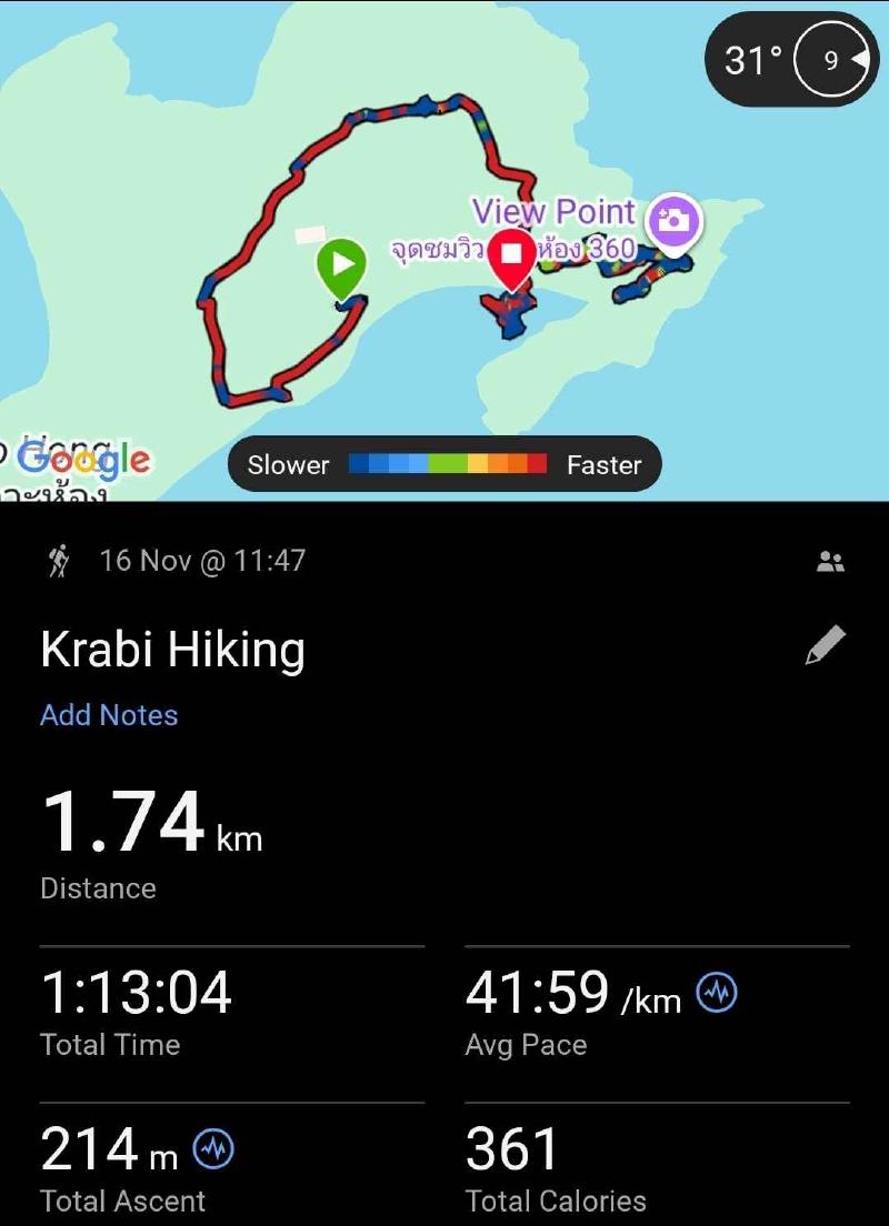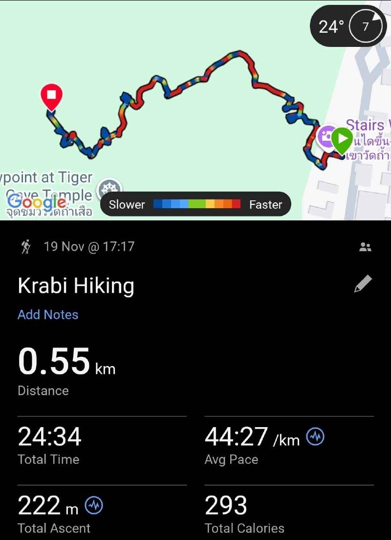 Overall we climbed over 500m in just under two hours with the temperature in the 30s. So we sweated profusely. I don’t think I had a single dry spot on my body. I had sweat dripping down from my eyebrows obstructing my view and fogging up my glasses
